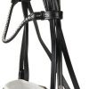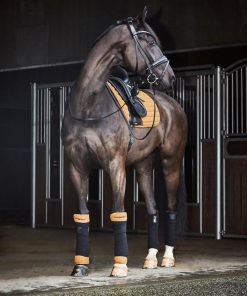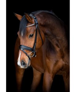 Nydelig anataomisk hodelag i italiensk lær og flott pannereim. Både nakkebånd og nesebånd er utstyrt med en tykk polstring av foam som er dekket med mykt kalveskinn for å avlaste trykket på nakken og forhindre kompresjon av de sensitive ansiktsnervene rundt kinnbeina og overkjeven.